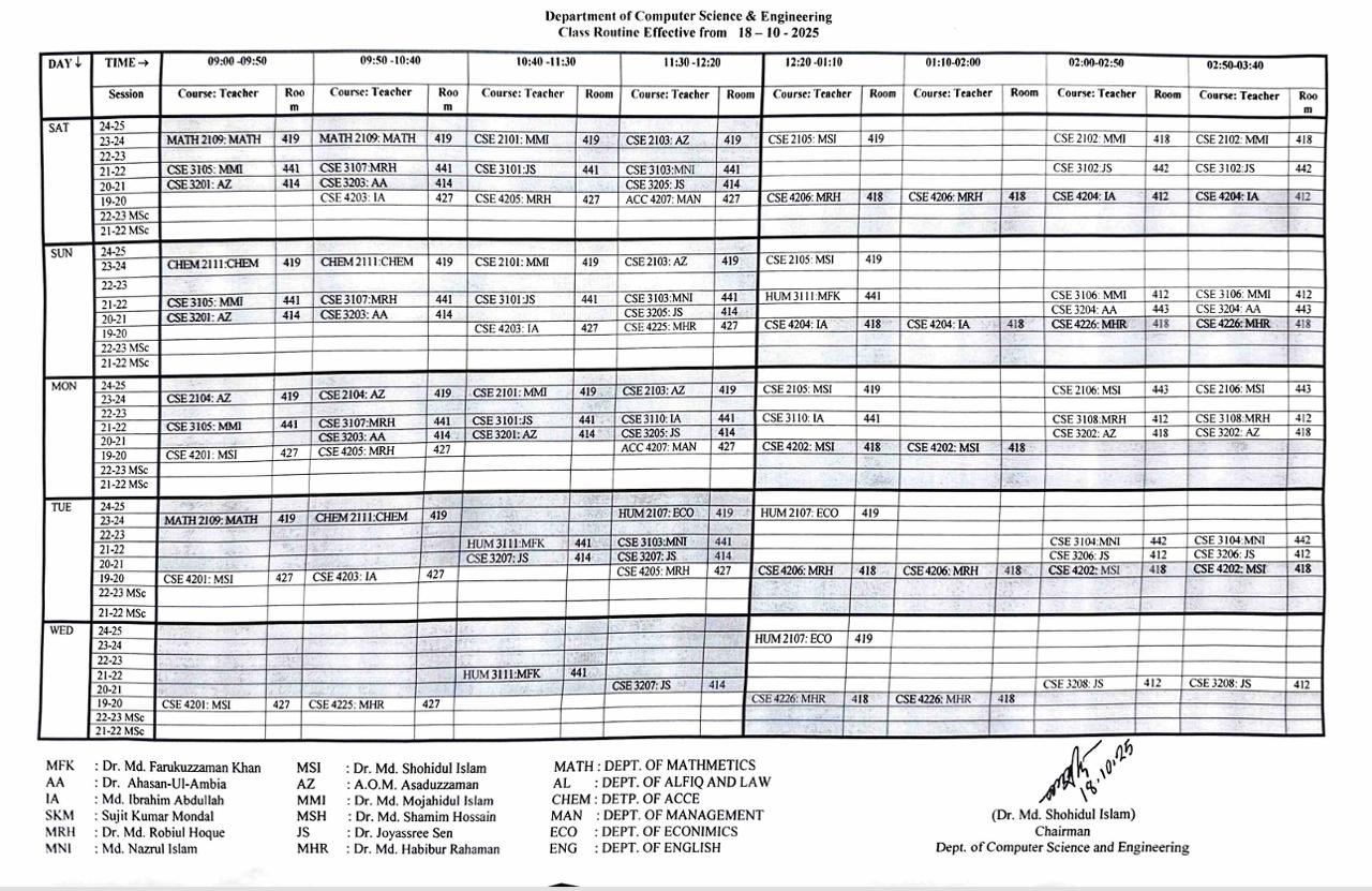 Class Routine Effective from 18/10/25